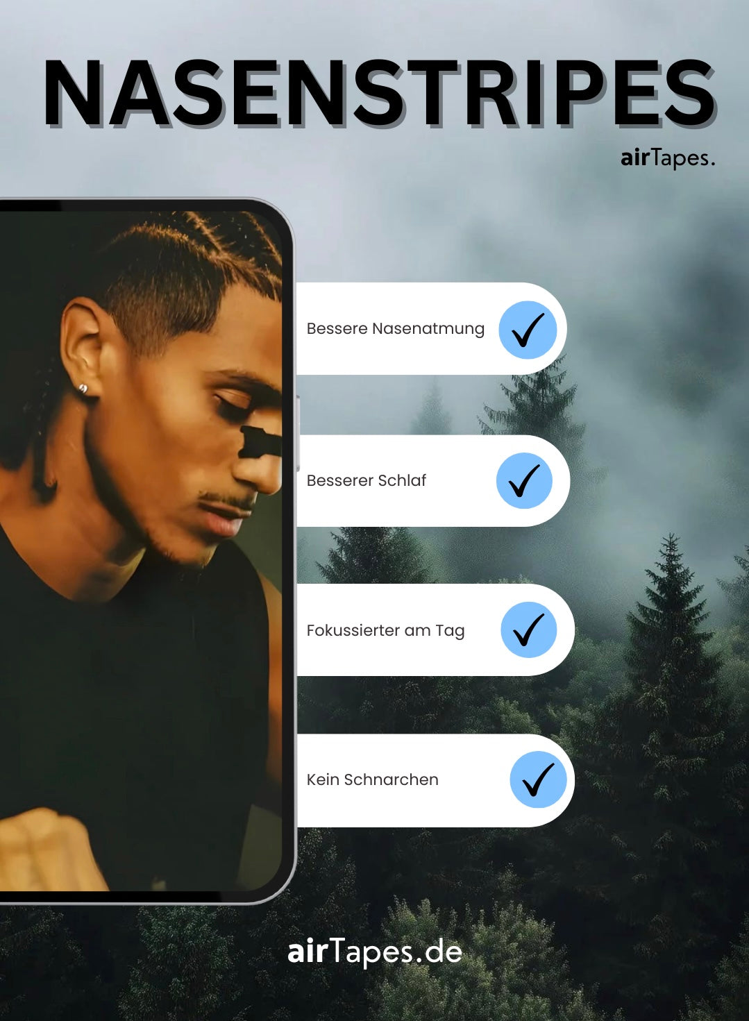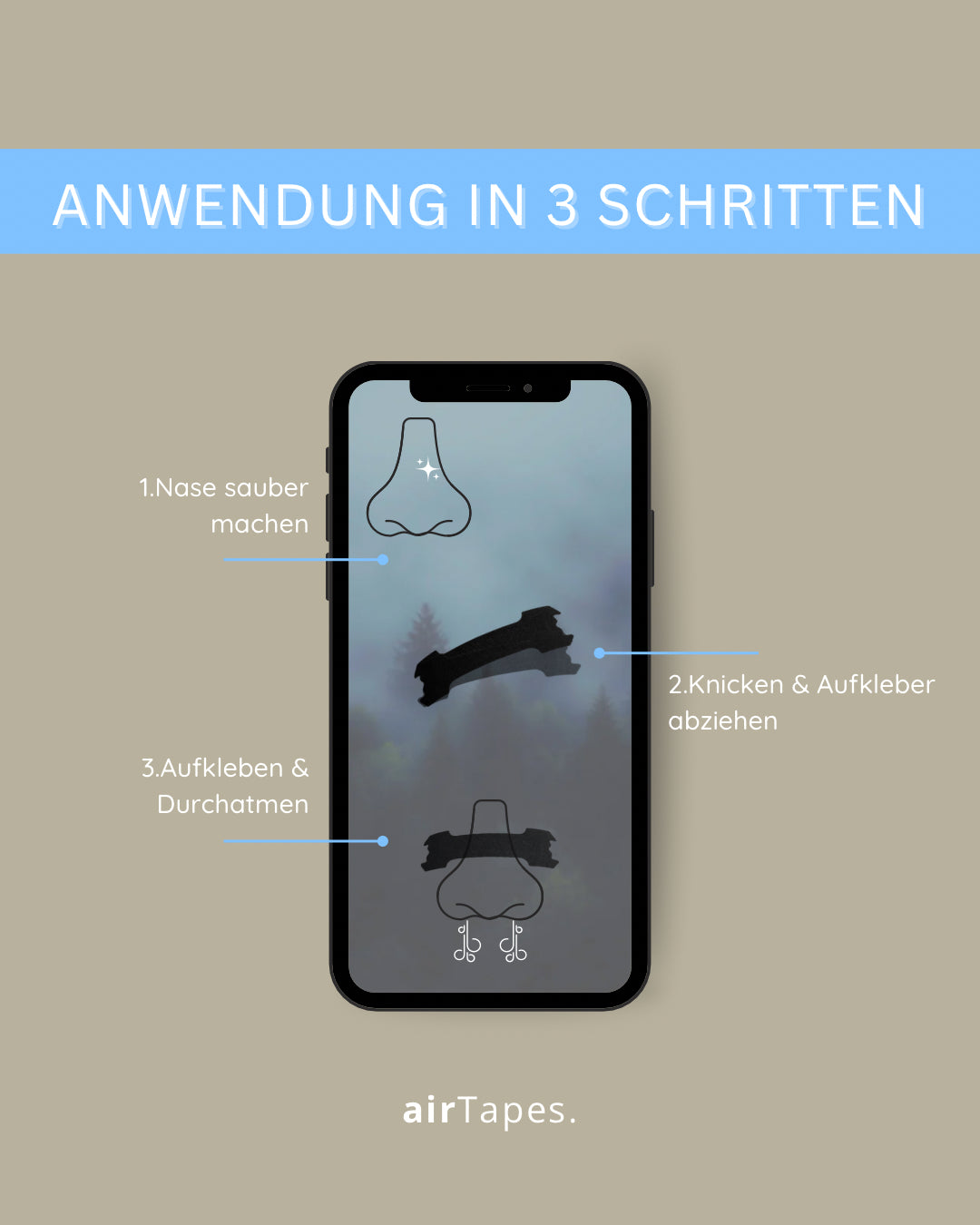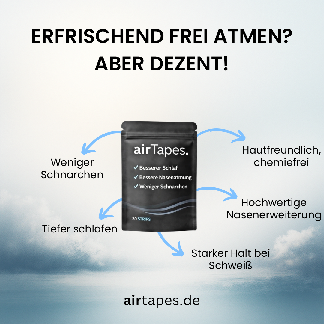 airTapes® öffnet deine Nase sanft, natürlich und nachhaltig – ohne Spray, ohne Tropfen, ohne Abhängigkeit.